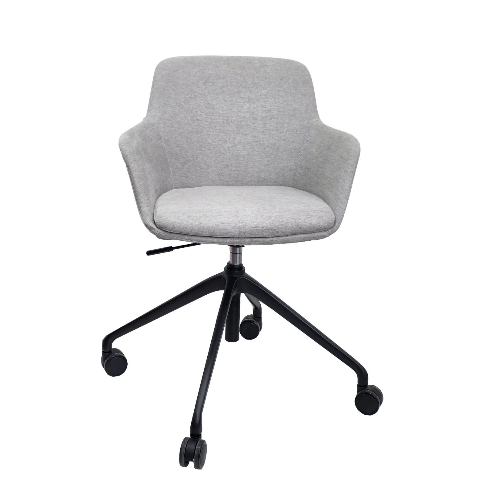 Liz Medium Back Chair is a timeless and inviting chair designed for ultimate comfort, ideal for enhancing the ambiance of meeting rooms. It boasts a sleek black powder-coated 4-star swivel base, complete with a gas lift and castors for effortless mobility. You can choose to upholster Liz’s elegantly curved shell in either charcoal house fabric or tan faux leather. Alternatively, you have the option to customise it in the fabric of your choice.